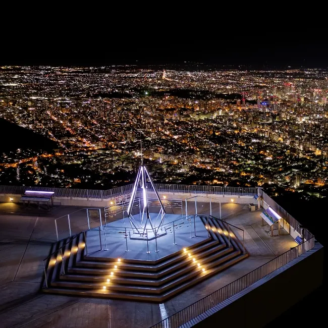 傍晚4点左右的日落前去了藻岩山。在缆车上享受空中散步的乐趣,到达了360度全景广阔的展望台! 从黄昏开始色彩就变了,转移到闪耀的夜景中的片刻,应该会成为难忘的回忆。