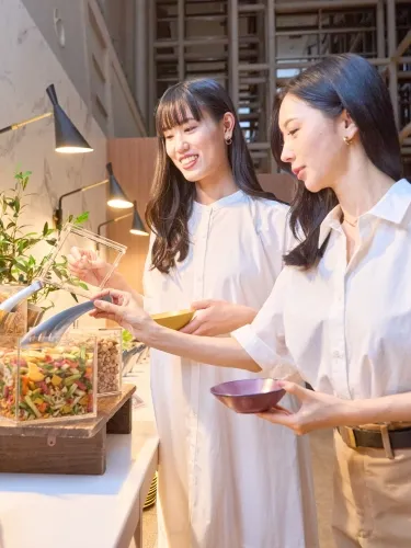 从一天的开始到优雅的时光。与名店“GARAKU”合作的咖喱汤等,特色菜单齐全的自助餐也是包罗万象。使用当季蔬菜制作的特制果汁也很好吃!