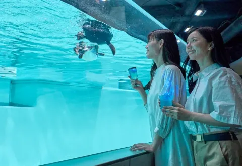 目的地是成为话题的水族馆。梦幻般的自然水族馆,仿佛在水中行走。……。被可爱的企鹅和水母治愈,在能享受面包和酒的面包BARU“白熊面包店&”悠闲地吃午餐时间。