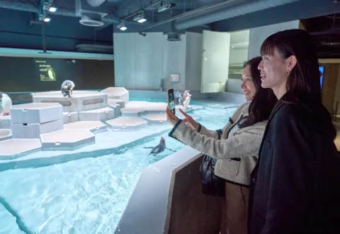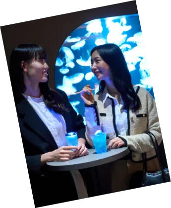 The destination is a topical aquarium. The fantastic Nature Aquarium is like walking underwater……。 A relaxing lunch time at the panbar "Sirokuma Bakery &" where you can enjoy bread and alcohol, healed by cute penguins and jellyfish.
