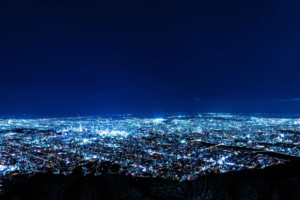 Moiwayama at an altitude of 531 meters overlooking the night view of Sapporo, which has been selected as one of Japan's New Three Great Night Views for the past three consecutive years. The panorama, where the lights of the city continue to Ishikari Bay, attracts visitors.
