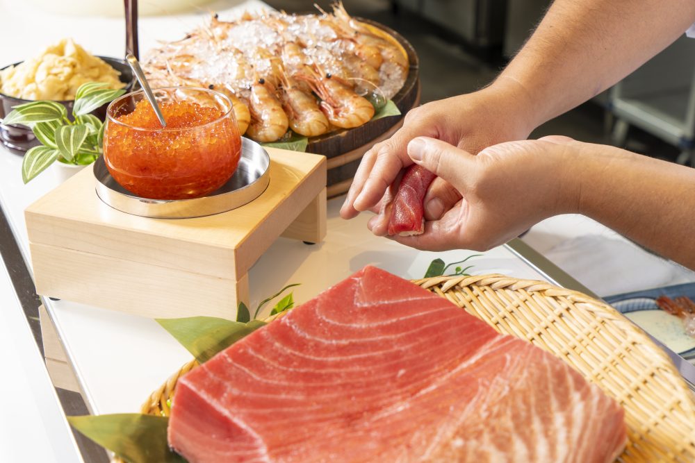 We offer 3 kans of tuna, peony shrimp, and Hokkaido-produced salmon in front of the customer. You can fully enjoy the seafood that feels the original taste of the ingredients.